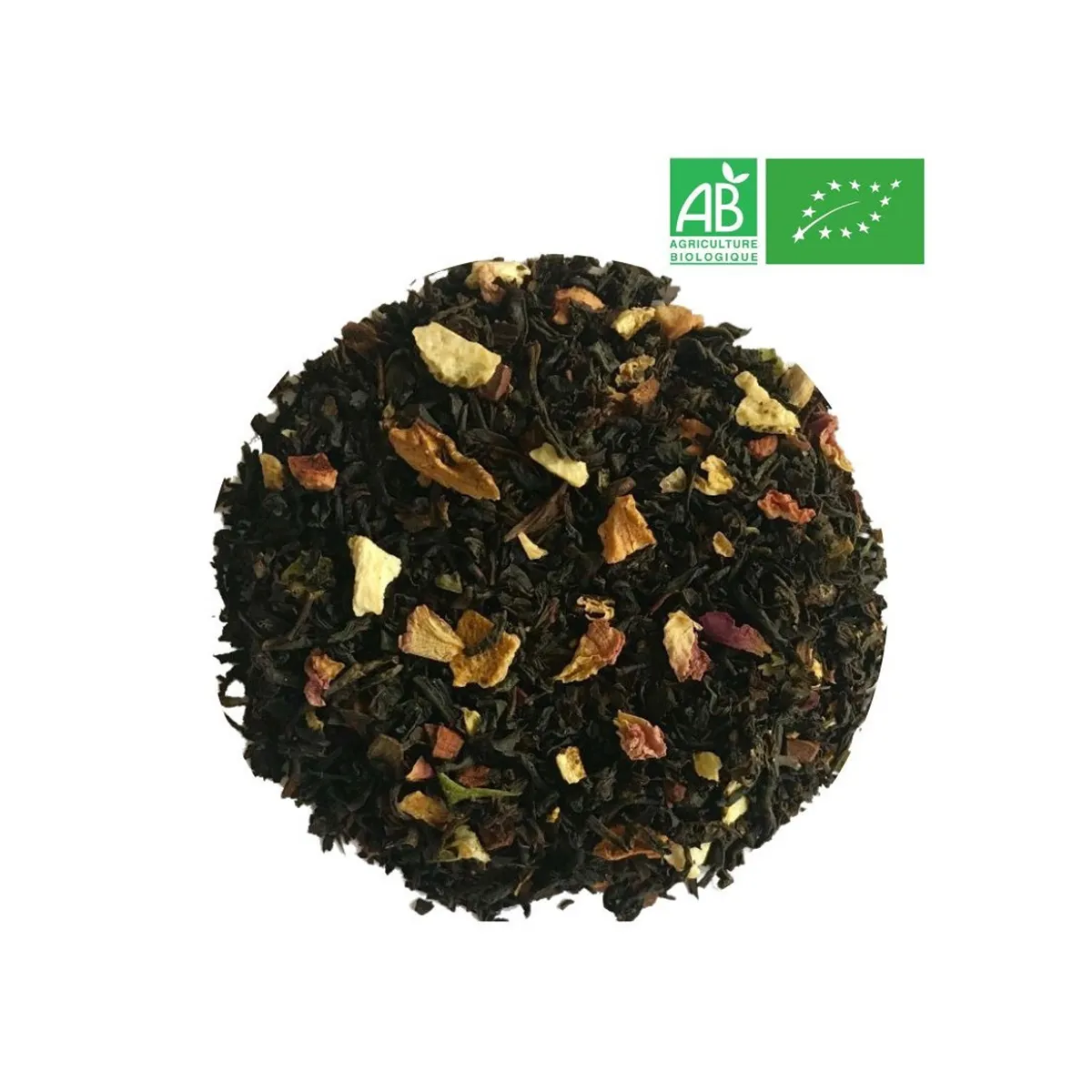 Célébrez l’esprit des fêtes avec notre Thé de Noël bio, un mélange chaleureux à base de thé noir Assam bio, agrémenté de morceaux de pomme, écorces d’orange, bâtons de cannelle, cardamome, clous de girofle, pétales de rose, et arômes naturels d’orange et de cannelle. Ce blend gourmand évoque le pain d’épices et les traditions hivernales, pour une pause réconfortante en famille ou en solo .